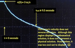 Computation of a ballistic trajectory with velocity dependent drag. |